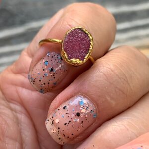 PINK SMALL GOLD PLATED NATURAL CRYSTAL STONE DRUZY QUARTZ MIDI RING SIZE 7
