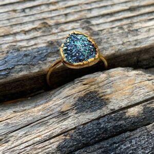 BRIGHT GREEN DRUZY – SMALL GOLD PLATED NATURAL CRYSTAL STONE RING SIZE 7