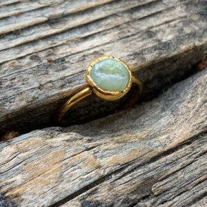 JADE GREEN SMALL GOLD PLATED NATURAL CRYSTAL STONE DRUZY QUARTZ MIDI RING SIZE 5