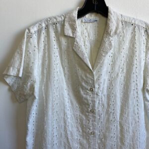 CUTE 1970S FULLY EYELET LACE COTTON BUTTON DOWN BLOUSE