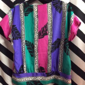 WOMAN’S TOP – SHORT SLEEVES – SHEER – VERTICAL STRIPES W/LEAF PRINT