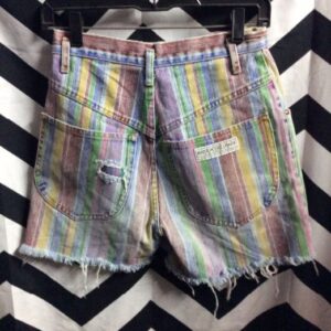 DENIM SHORTS – CUTOFF – MULTICOLOR VERTICAL STRIPES – WORN & FRAYED