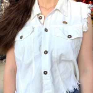 RECONSTRUCTED CROPPED EYELET COTTON TOP