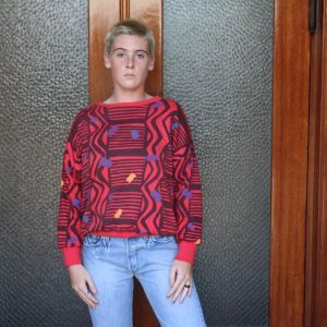 FUNKY 1980S GEOMETRIC PRINT PULLOVER SWEATSHIRT MEMPHIS DESIGN PRINT
