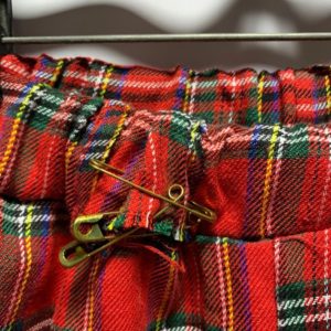 FUNKY PLAID PANTS ELASTIC WAIST & BRASS SAFETY PIN DETAIL AS-IS