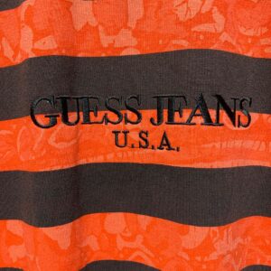 VINTAGE DEADSTOCK GUESS JEANS TSHIRT U.S.A STRIPES AND FUNKY PRINT ORANGE BLACK