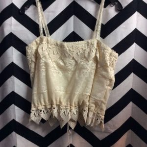 VINTAGE TOP – CROPPED – SLEEVELESS – LEAVES SURROUNDED BY LACE FABRIC