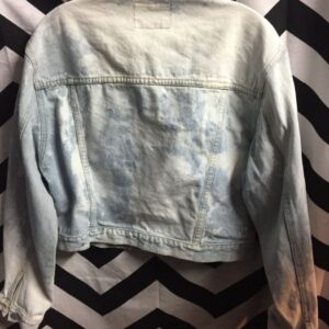 CROPPED DENIM MOTORCYCLE JACKET SEWN LABELS