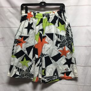 FUNKY VINTAGE STAR / GEOMETRIC SHAPE DESIGN BOARD SHORTS – AS IS