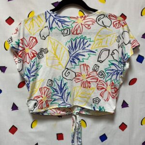 VERY COOL 1980S FUNKY TROPICAL FLORAL PRINT COTTON WRAP TOP