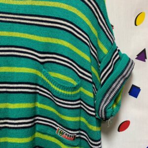 SHORT SLEEVED FUNKY KNIT STRIPED POCKET SWEATER