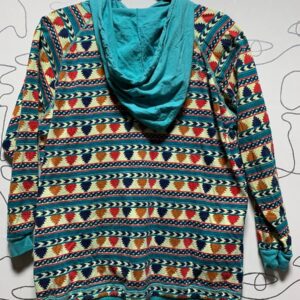 SOUTHWESTERN PRINT HORIZONTAL STRIPE PRINT HOODED LONG SLEEVE TEE