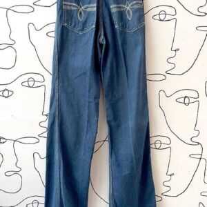 SUPER HIGH WAIST SUPER 70S DARK INDIGO CONTRAST STITCH DENIM JEANS