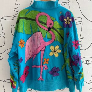 1990S CHAIN STITCH EMBROIDERED TROPICAL FLAMINGO DESIGN COTTON BOMBER JACKET