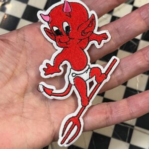 DEVIL BOY RIDING PITCHFORK EMBROIDERED PATCH