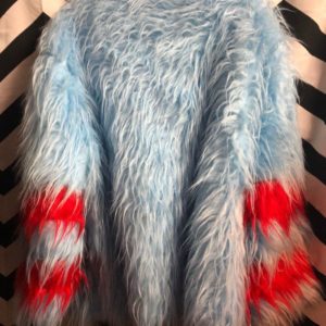 JACKET LONG FAUX FUR W/ STRIPE SLEEVES
