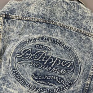 KILLER DR. PEPPER BACK LOGO GRAPHIC ACID WASH DENIM JACKET W/ SILVER STUD DETAILS