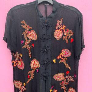 1990S GORGEOUS SHEER SHORT SLEEVED EMBROIDERED BUTTON DOWN DRESS OPEN SLITS