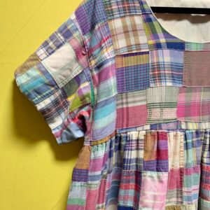CUTE! 1990S MADRAS PLAID QUILTED PATCHWORK BABYDOLL DRESS