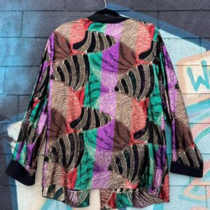 REVERSIBLE PUFFY SWEATSHIRT W/ FUNKY 1980’S ABSTRACT PRINT IN PASTEL COLORS
