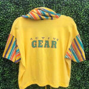 ACTIVE GEAR CROPPED TRIBAL PRINT DRAWSTRING SHORT-SLEEVE ZIP-UP JACKET W/ HOOD