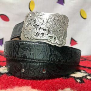 BELT LEATHER & SILVER ENGRAVED CONCHOS *MISSING BUCKLE