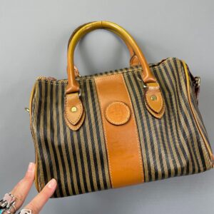 *AS-IS* CLASSIC 1980S STRIPED FAUX FENDI DOUBLE HANDLE SPEEDY TYPE BAG