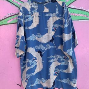 *AS-IS* GORGEOUS! 100% SILK ORIENTAL CRANE PRINT HAWAIIAN SHIRT, COCONUT BUTTONS