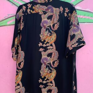 GORGEOUS! 100% SILK TIGER & DRAGON PRINT HAWAIIAN SHIRT, COCONUT BUTTONS