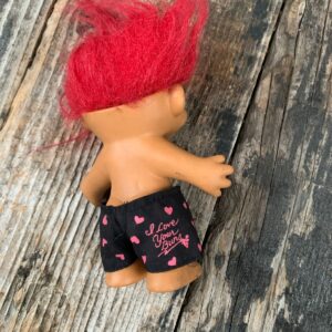 RED HAIR TROLL DOLL WITH HEART SHORTS I LOVE YOUR BUNS