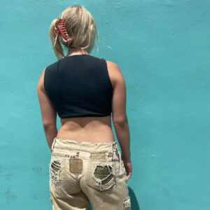 ADORABLE CUT & REPURPOSED DOUBLE O-RING COTTON CROPPED TOP