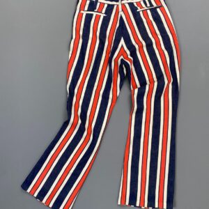 *AS-IS* KILLER! 1960S-70S PERM-PRESS RED WHITE & BLUE VERTICAL STRIPED FLARED PANTS