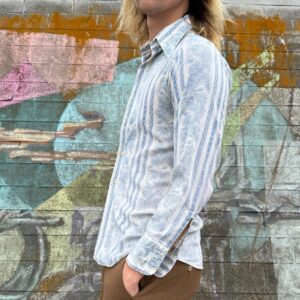 *AS-IS* 1980S SEAFOAM A.S.W. PULLOVER HEAVY COTTON SHIRT STRIPED ARMS
