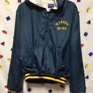 WARREN BEARS HOODED PULLOVER WINDBREAKER JACKET W/ ZIP-UP NECK & YELLOW HORIZONTAL STRIPE CUFFS AS-IS