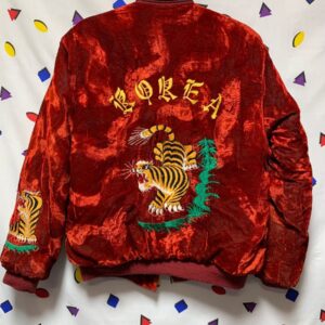 CRUSHED VELVET BOMBER JACKET KOREA CALIGRAPHY TIGER BACK DESIGN