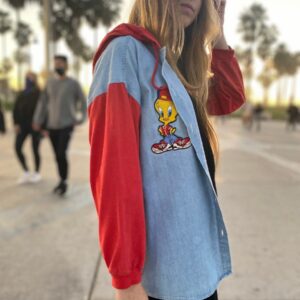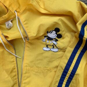 RETRO HOODED 1970S EMBROIDERED MICKEY MOUSE VERTICAL STRIPE SLEEVE CINCH-TIE BOTTOM JACKET