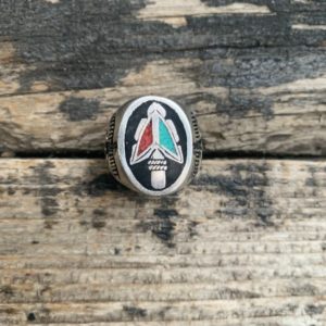 ARROW HEAD CRUSHED CORAL, TURQUOISE & ONYX MOTORCYCLE BIKER RING