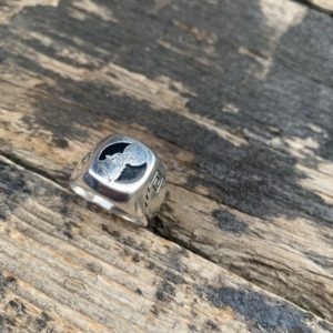 WOLF HOWLING AT MOON CRUSHED ONYX MOTORCYCLE RING