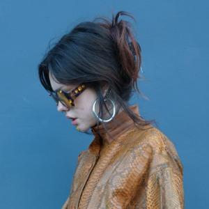 OVERSIZED OCTAGON SHAPE YELLOW LENSE SUNGLASSES RHINESTONE DETAILS