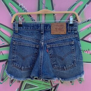 1990S STONEWASH LEVIS 517 DENIM CUTOFF SHORTS FRONT RIPS