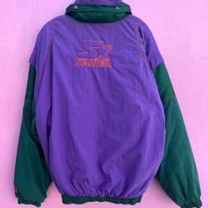 RAD COLOR BLOCK STARTER JACKET HIDEAWAY HOOD EMBROIDERED STARTER BACK DESIGN, QUILTED INNER LINING