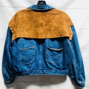 1980S CROPPED UPSIDE DOWN PANTS DENIM JACKET WITH WESTERN SUEDE DETAILS