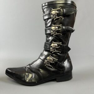 BROGUE VEGAN LEATHER SKULL BUCKLE BOOTS