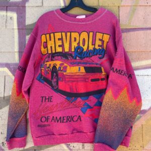 RED OVERDYED CHEVROLET RACING NASCAR ALLOVER PRINT GRAPHIC CREWNECK SWEATSHIRT