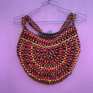 ADORABLE! 1970S COLORFUL WOOD BEADED SHOULDER BAG PURSERead more