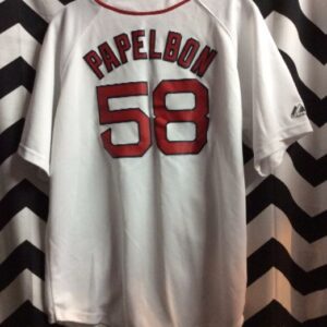 RETRO MAJESTIC BASEBALL JERSEY, RINGER STYLE, BOSTON RED SOX, EMBROIDERED LETTERING