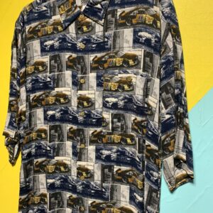 RACE CAR ALL OVER PRINT GRAPHIC SHORT SLEEVE BUTTON UP SHIRT