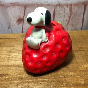 SNOOPY SITTING ON STRAWBERRY COIN BANK