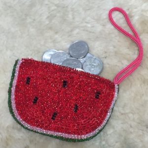 WOVEN BEAD COIN PURSE W/ LEOPARD PATTERN