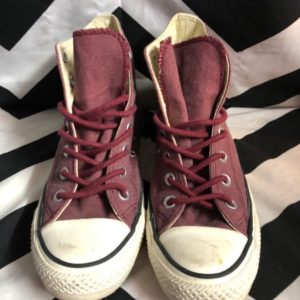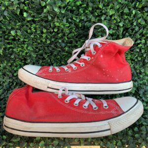 RED CONVERSE CHUCK TAYLOR SHOES W/ BLEACH SPOTS THROUGHOUT